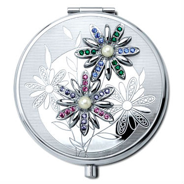 Shiny & matt nickel plated with colorful crystals & white pearl.