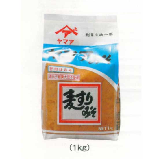 Displayed is miso sauce that comes in a simplistic package. With a special recipe, this miso sauce has a superior sweetness that is enjoyable and delicious. This high quality miso sauce goes well with many dishes you like.