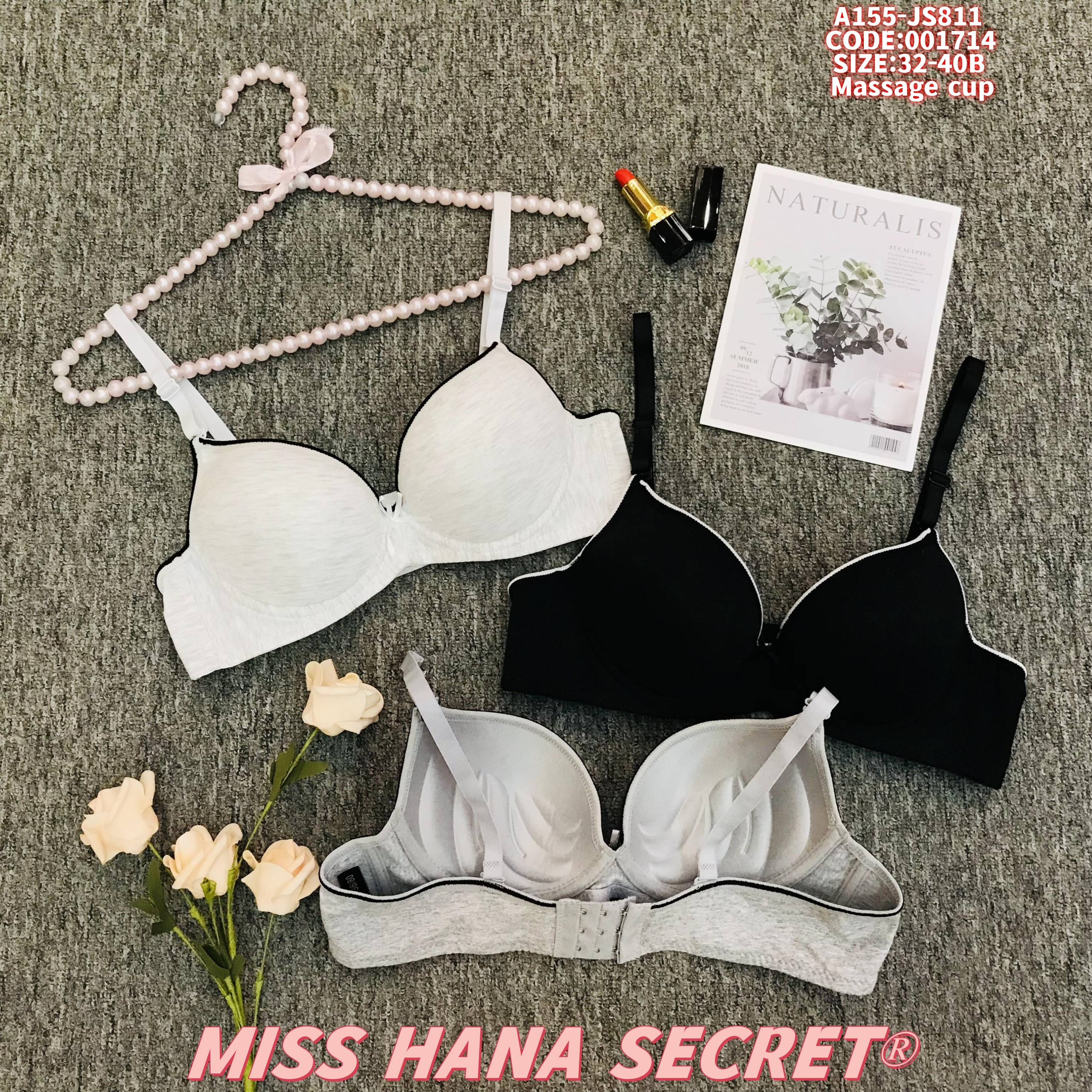 Embrace understated elegance with these Miss Hana Secret massage cup bras! Available in versatile white, black, and gray, the sleek, minimalist design features a soft, supportive push-up silhouette (one style adds a subtle buckle detail for a modern touch). Crafted from comfortable fabric, these bras blend daily wearability with a flattering shape—ideal for pairing with any outfit. Sized 32-40B, this set brings timeless, low-key charm to your lingerie collection!
