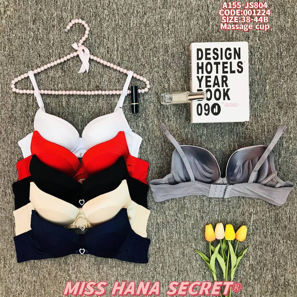 Elevate your lingerie collection with these stylish & comfortable Miss Hana Secret massage cup bras! Available in classic shades (white, red, black, beige, navy, gray), this push-up design offers gentle support and a flattering silhouette. Crafted for a soft fit, it’s perfect for daily wear or special occasions. Size range: 38-44B. Add a touch of elegance to your wardrobe!