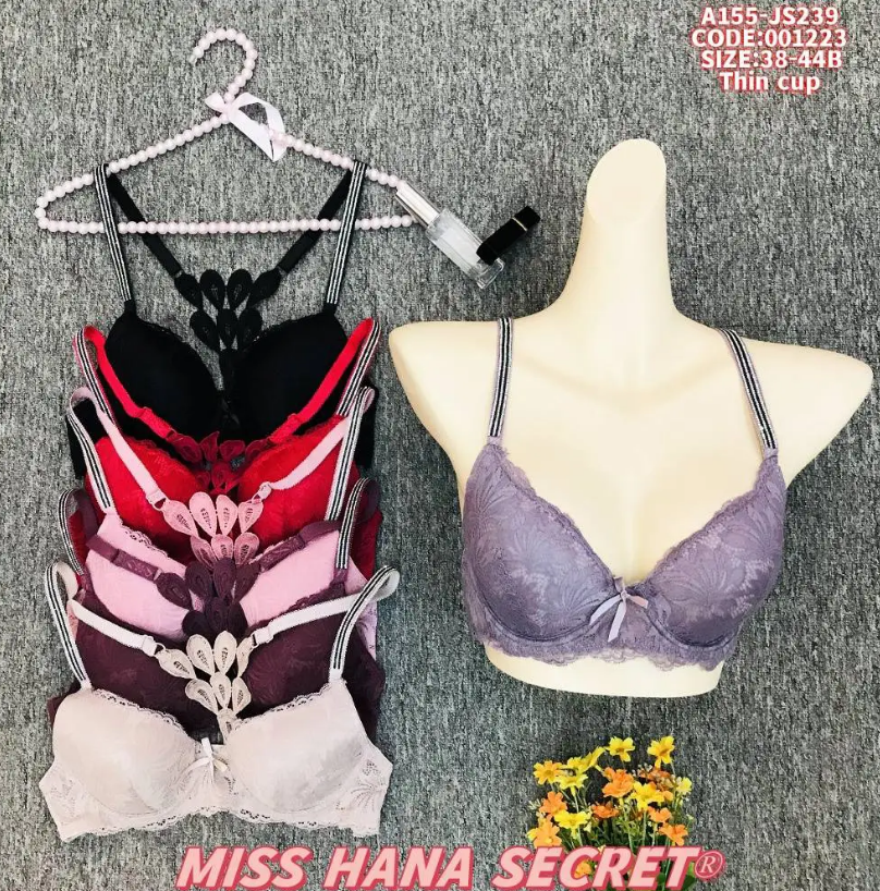 Embrace elegance and comfort with the Miss Hana Secret Thin Cup Bra! Crafted with delicate lace fabric and charming details (like floral accents and bow closures), this push-up style offers a lightweight, breathable fit (perfect for everyday wear) while delivering subtle lift. Available in rich hues (classic black, bold red, soft pink, deep burgundy, neutral beige) and sized 38-44B, it blends feminine design with practical support—ideal for pairing with any outfit, from casual tops to dressy ensembles. Elevate your lingerie collection with these stylish, versatile pieces!