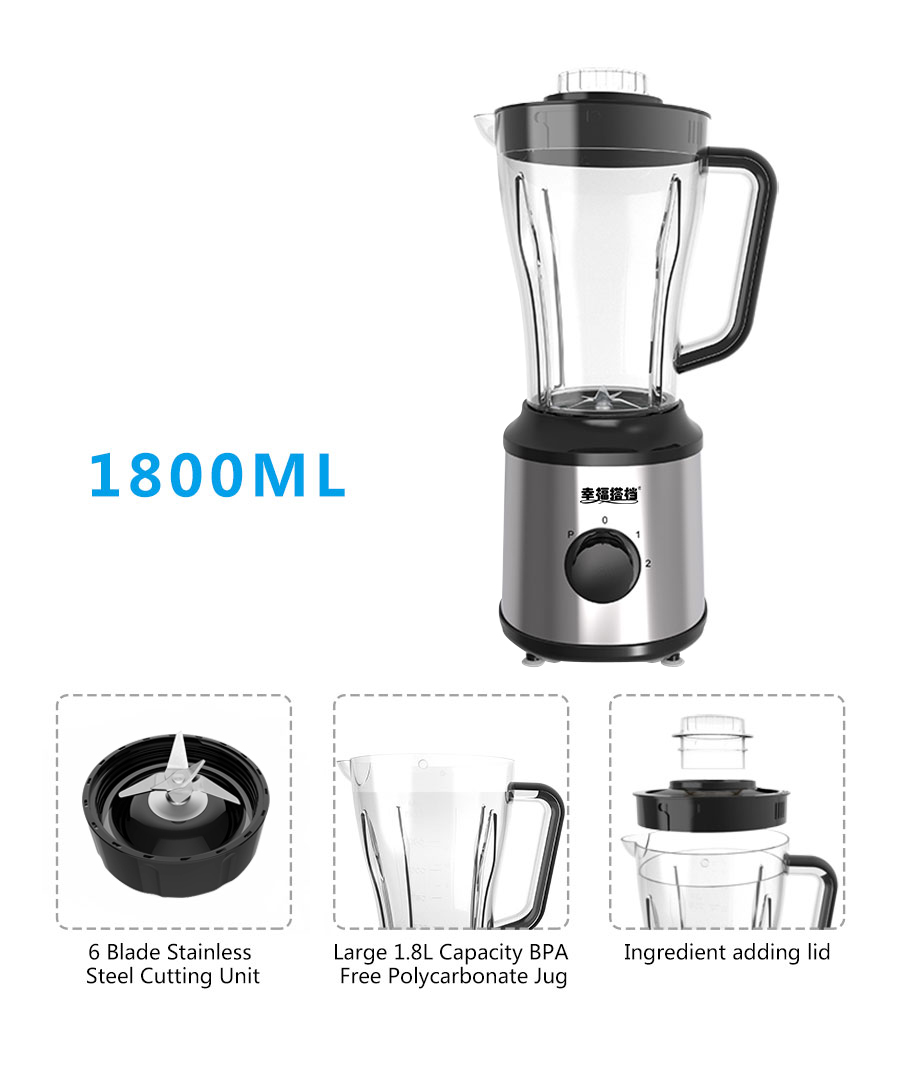 High-Quality 1.8L PC Cup 350W Pure Copper Motor Mixer Blender With SUS 304 Blade