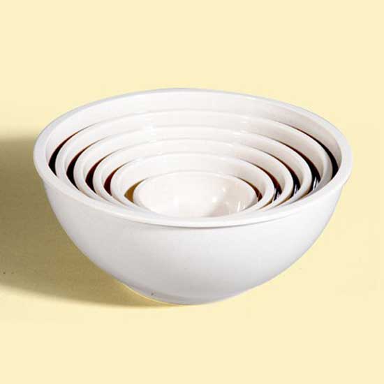 This mixing bowl comes in clean white with a glossy finish. Made of bio bamboo fiber, it boasts lightweight yet robust construction and first-rate durability. There is a wide range of sizes available for customers to choose from.