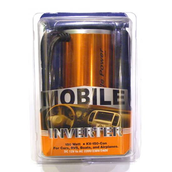 This is an orange colored mobile inverter. It can be used to convert 150W d.c. into 150W a.c. The power inverter is also a high power electrical oscillator.