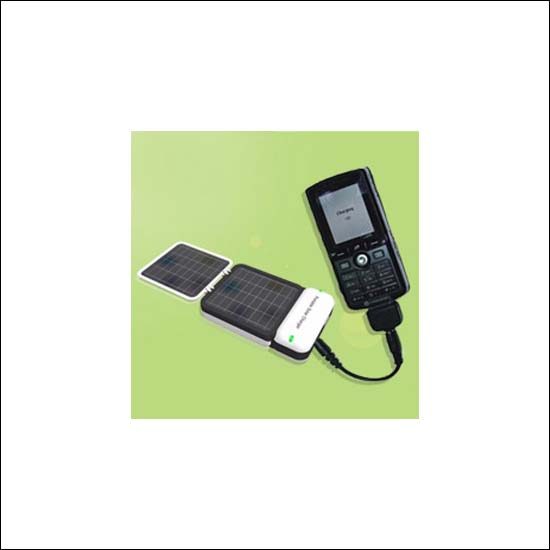 Solar mobile phone charger has mono or multi-crystailine solar panel, 5.5V/100ma