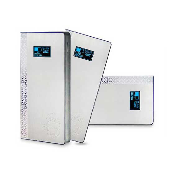 This stylish mobile power bank features a slim silver-toned housing and a small digital display. It is a reliable back-up power source for your mobile devices while you are on the go. The power bank comes with 500 charge cycles.