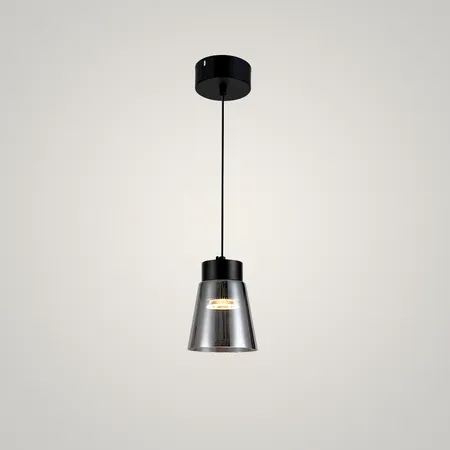 Impressed with its minimalist design featuring a matte black metal base and a dark smoked glass shade, this single pendant light is a perfect choice for some small spots. Inside, the led light emits quiet and soft light through the funnel-shaped dark smoked glass shade.