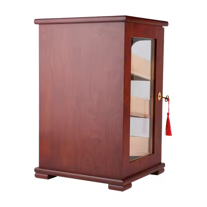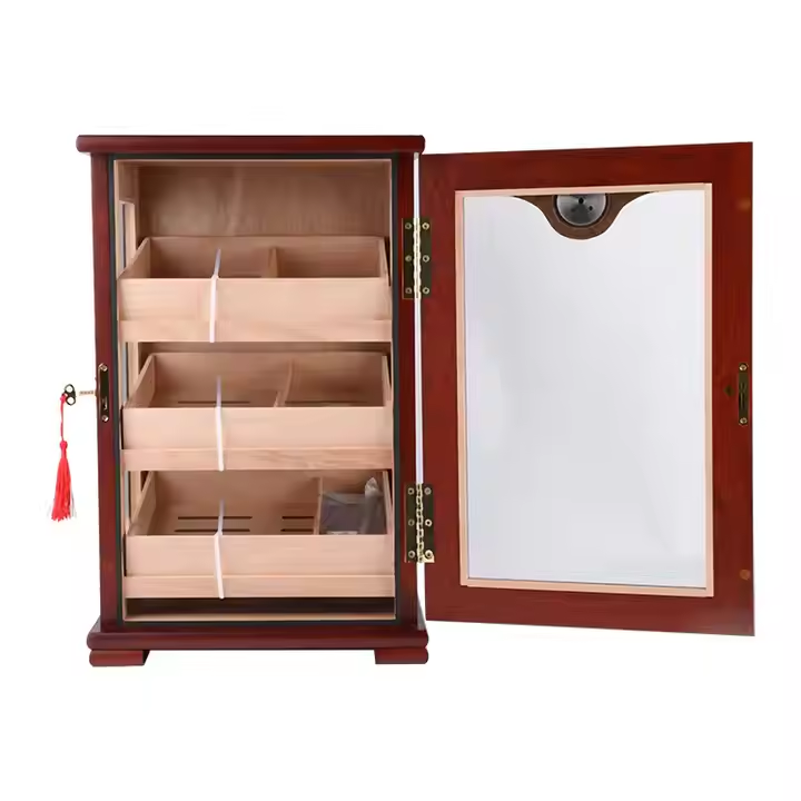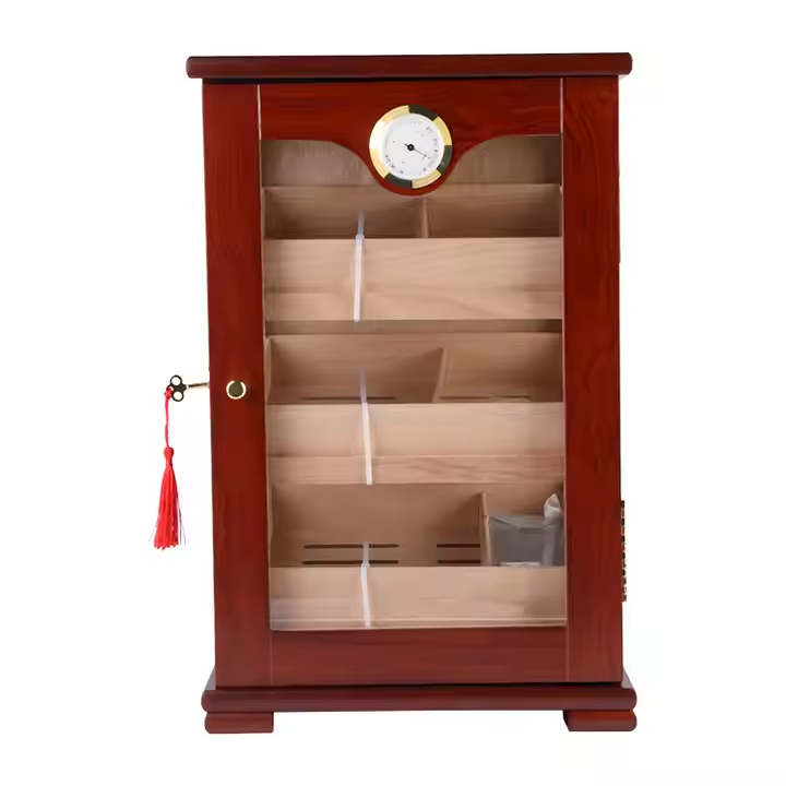 Modern Top Tempered Glass Desktop Cabinet Wooden Cigar Humidor Box with Humidity System