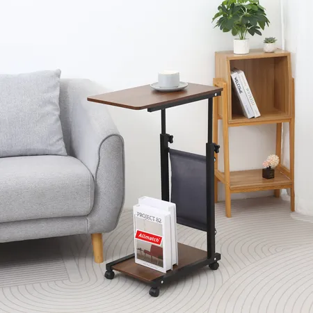 The height-adjustable side table is suitable for living rooms, bedrooms and studies. It is used for reading, watching TV, studying and having meals. It has sliding wheels and is easy to move