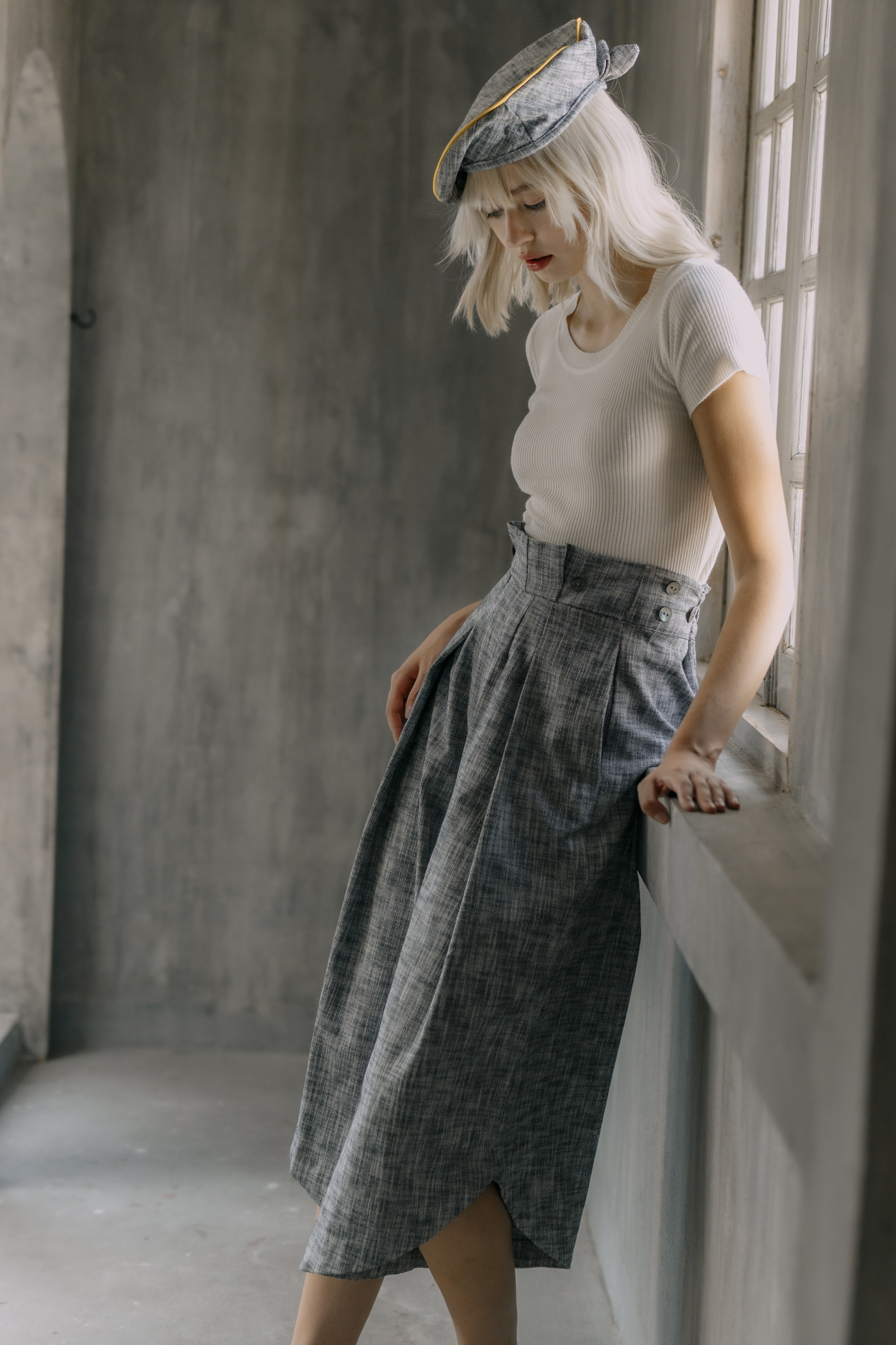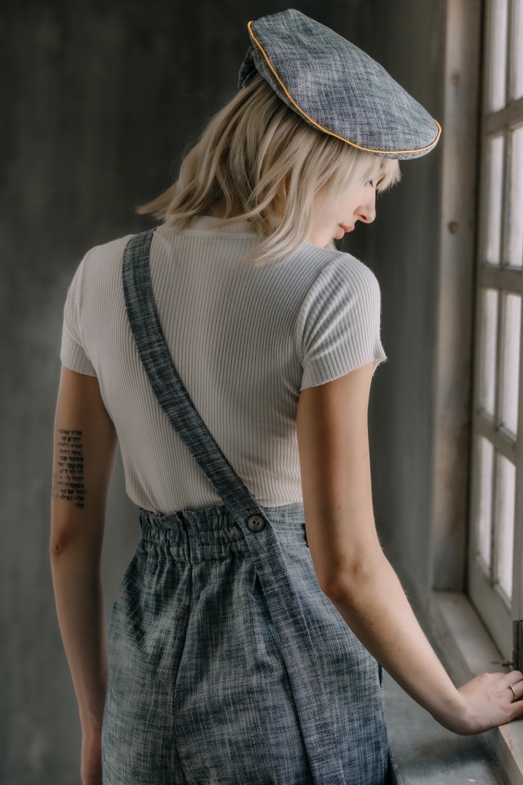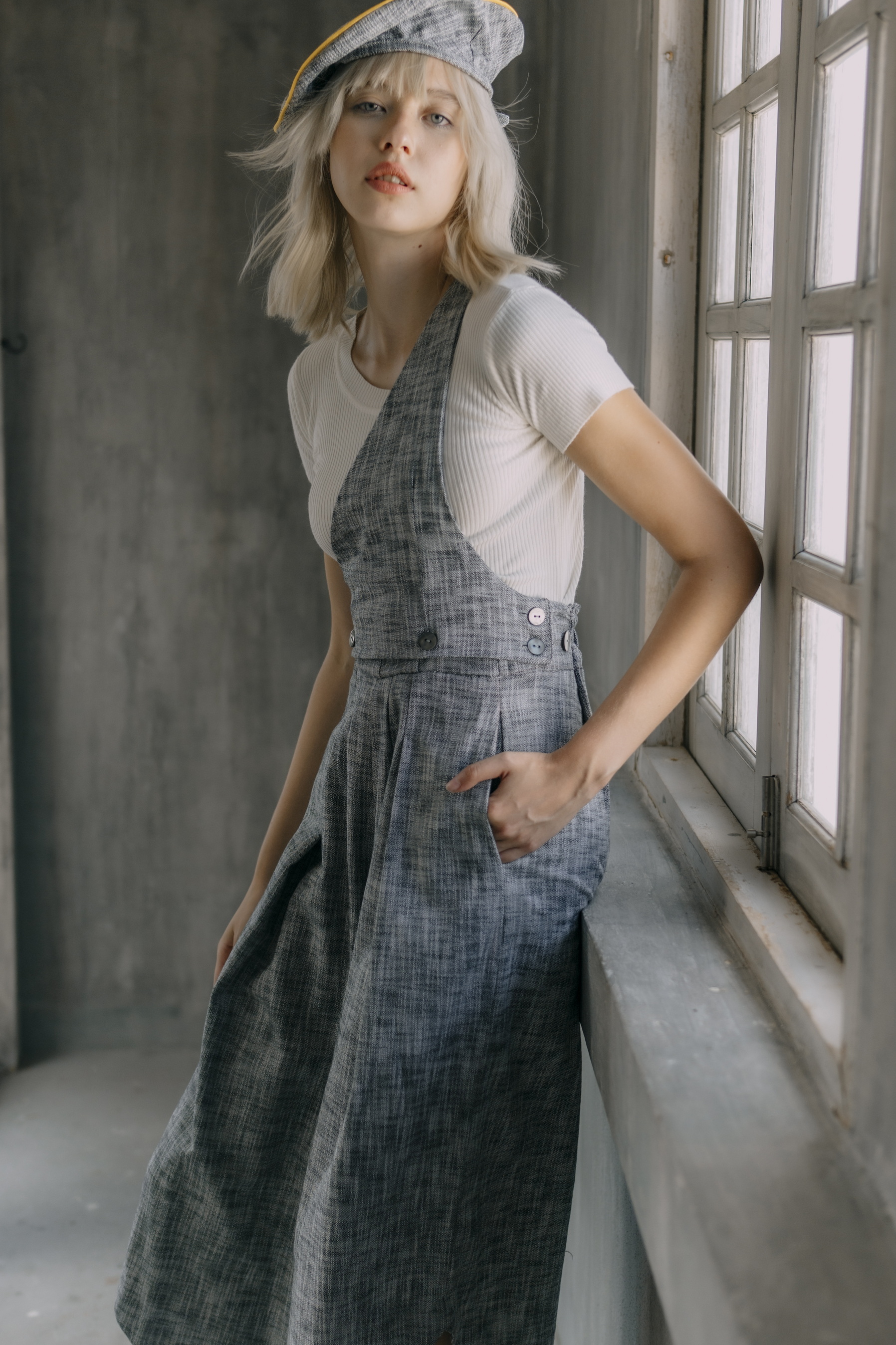 Modular wide-leg pants with detachable suspenders and pleated details.