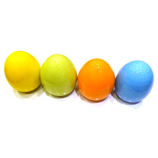 The money banks come in a unique egg shape. The exquisite craftsmanship gives them a polished surface. These colorful money banks make great gift items for children.