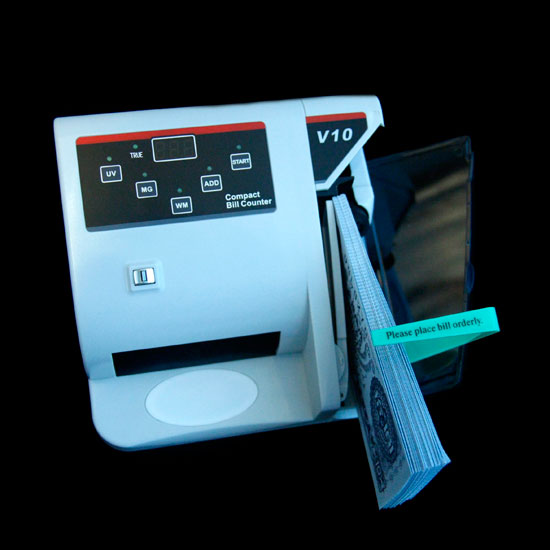 Presented is an automatic banknote counter designed in a compact size. It checks money piece by piece for accuracy. This counter can check 120 banknotes at one time.