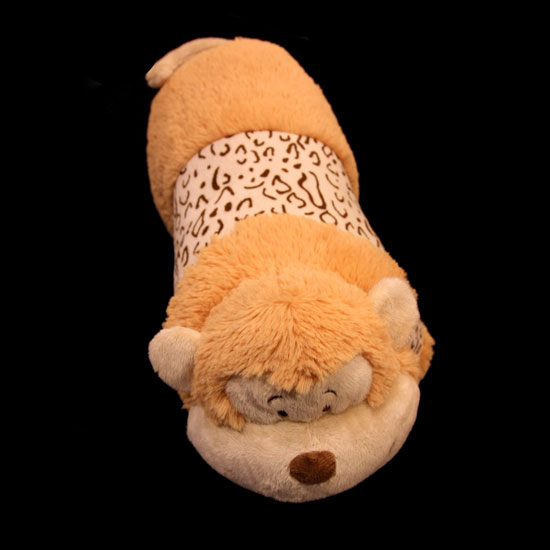This long, cylindrical-shaped pillow appeals to children with its adorable monkey design. The fluffy shell and soft stuffing make this pillow pleasant to touch. This comfortable pillow can be placed in a bed or on a couch as a cushion.