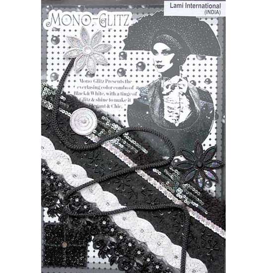 The trimmings here are designed in black and white for an elegant style. Sequins, beads and rhinestones with brilliant craftsmanship are added. These beautiful trimmings are used for making of garments, chasuble vestments, bags, belts, hairbands, etc.