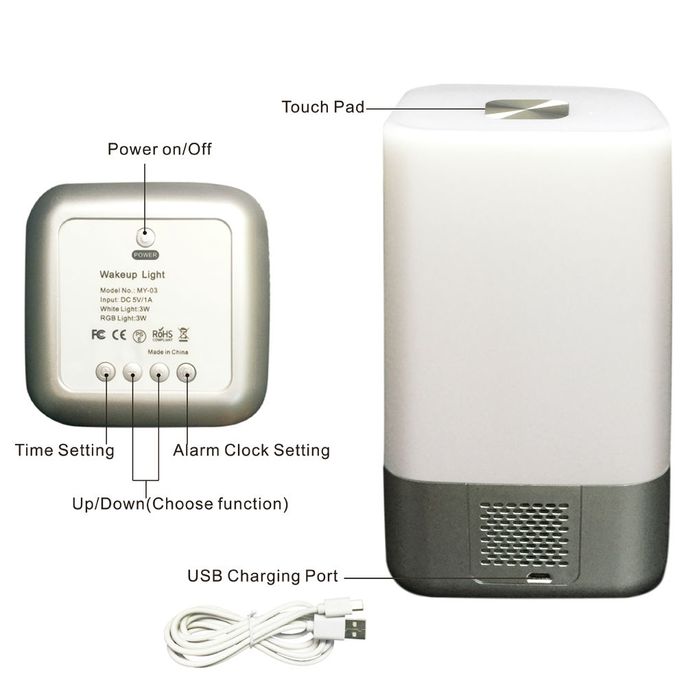 Wake up light + atmosphere light + alarm clock come out: wake up by 5 natural sounds and lights