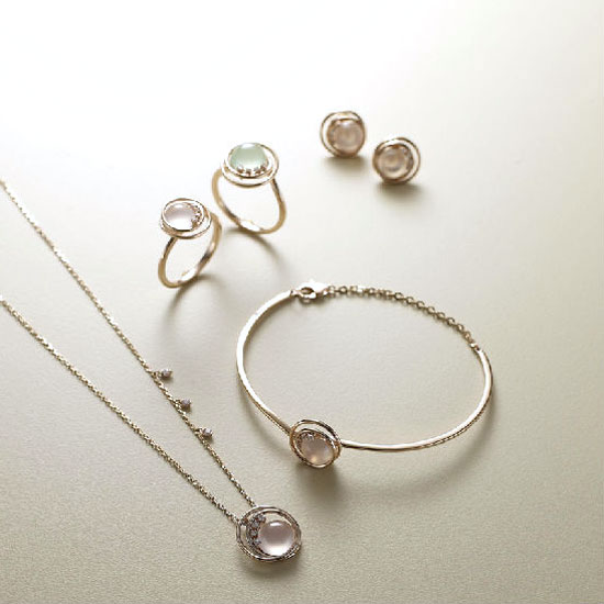 This jewelry set of a necklace, a bracelet, rings and earrings is elegant beyond measure. The round-cut moonstones are finely mounted onto pink, yellow or white gold. The light pink and green luster of the natural gems is unpretentious and incredibly graceful.