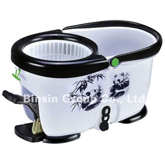 This mop bucket comes with a panda-inspired design in black and white. The pedal design allows you to control the amount of water in the mop easily. Cute graphics on the bucket serves to lift users' mood.