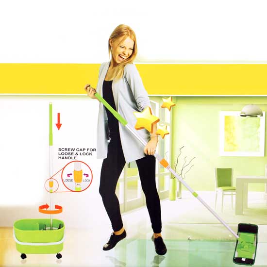 This exclusive mop set includes a flat microfiber mop and a bucket with a wringer system. The flexible 360-degree swivel head allows easy cleaning under appliances, cabinets, and other hard-to-reach places. The bucket lets you thoroughly clean the microfiber pad while keeping your hands dry and clean.