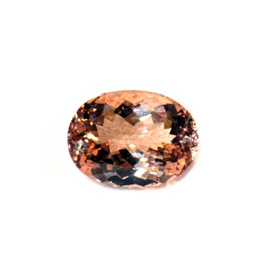 This is a morganite stone with an oval cut in an elegant peach color. It is well polished with a faceted surface that reflects light to the greatest extent. This rare and beautiful morganite makes a glamorous and dainty addition to your jewelry collection.
