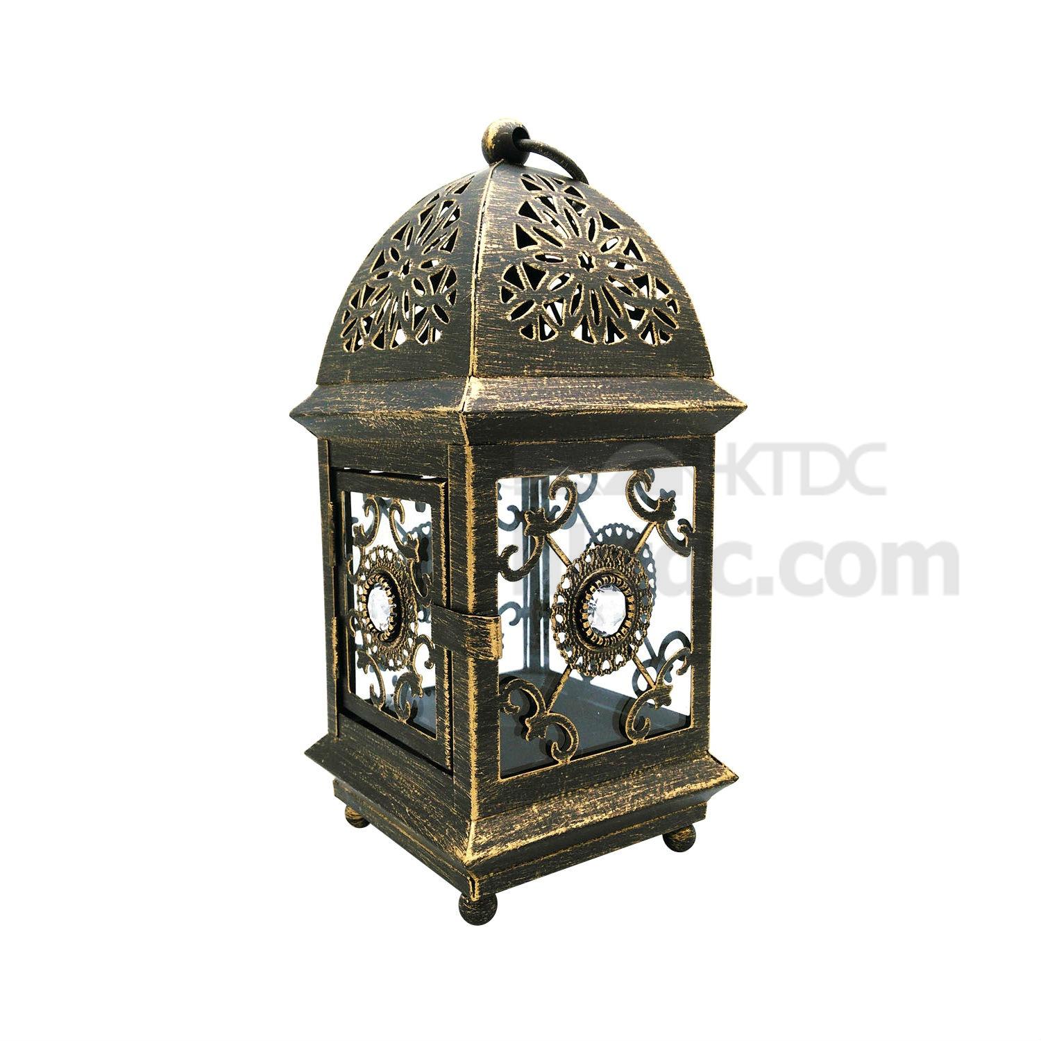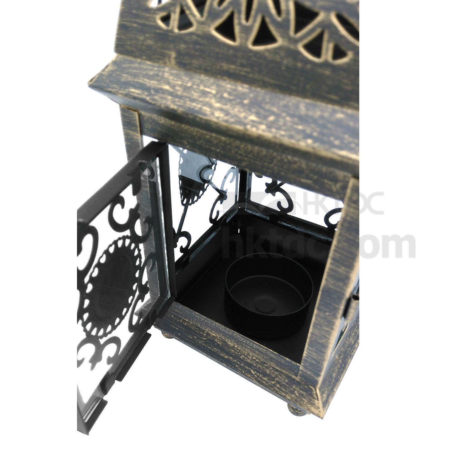 Vintage moroccan iron hanging tea light holder, brushed golden european metal glass storm lantern, romantic wedding candle holder.