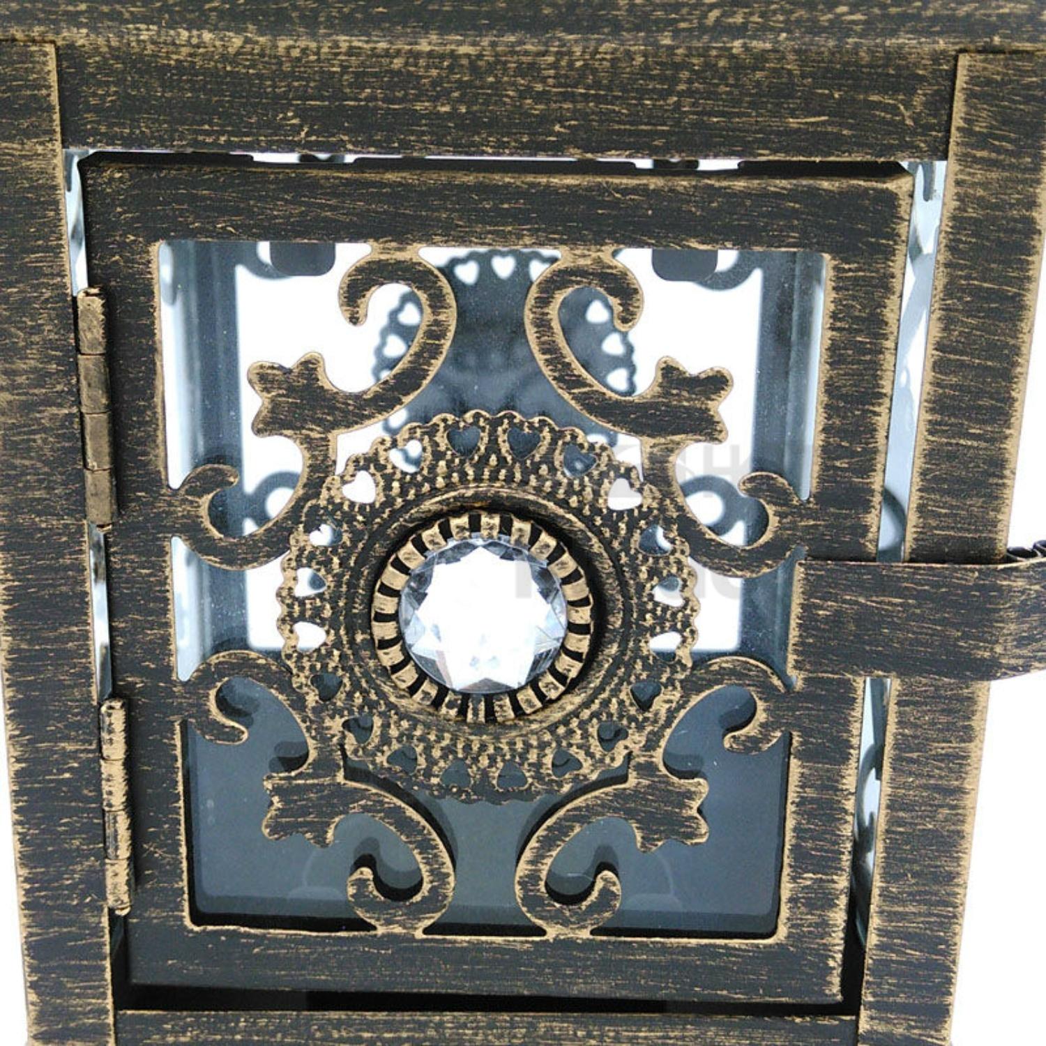 Candlelight shines from the cutout design of this lovely, brushed golden black lantern! It's hexagonal hurricane shape in old black color is stunning against lush garden greenery, casting a gracious golden glow on a twilit summer's night.