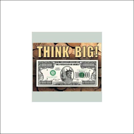 The words THINK BIG! are printed to look like large gold bars across top of poster