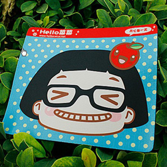 This is a mouse pad made of robust material for a long service life. It is printed with the Happy Caicai's head for added cuteness. The blue background and yellow dots complement this design for a perfect finish.