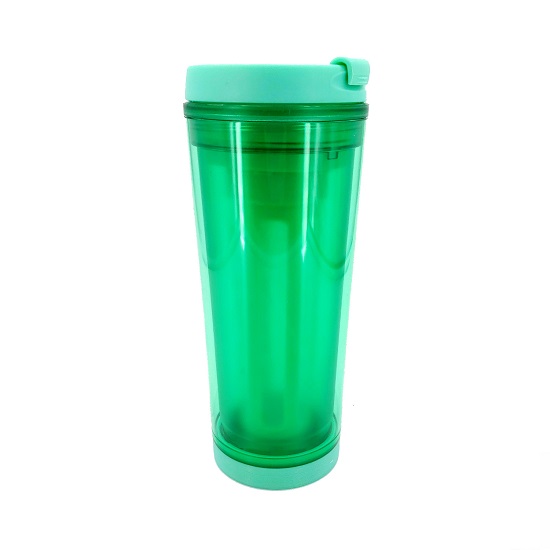 This BPA free PP thermal tumbler comes with a tea filter and has a high gloss, hard and smooth texture. It has a double wall construction and can keep hot drinks hot and cold drinks cold. The thermal tumbler is covered with a straw-friendly lid and can be printed with logos for using as a promotional gift.