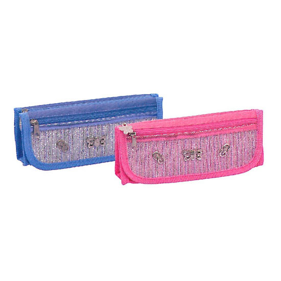 The cheerful color pencil case is decorated by metal butterfly embellishments. The multi-compartments design allows organizing storage. This delicate pencil case is good for keeping your stationery.