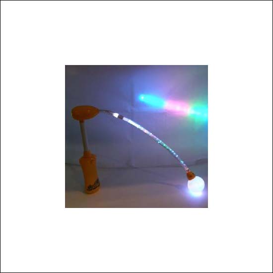 The unique design of this toy lamp has an extended multi color arm that adds color to your room