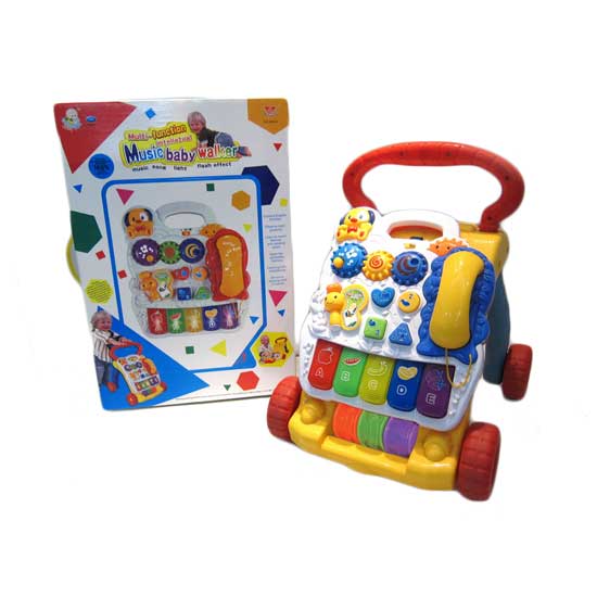 The multi-function baby toy cart is lighted and comes with 12 songs for your selection. It features the English pronunciation of animals, fruits, letters and numbers. This multi-function baby toy cart has a phone that teaches babies how to hold phone conversation.