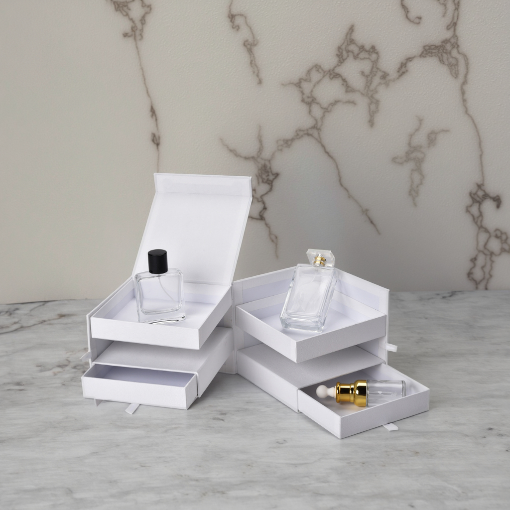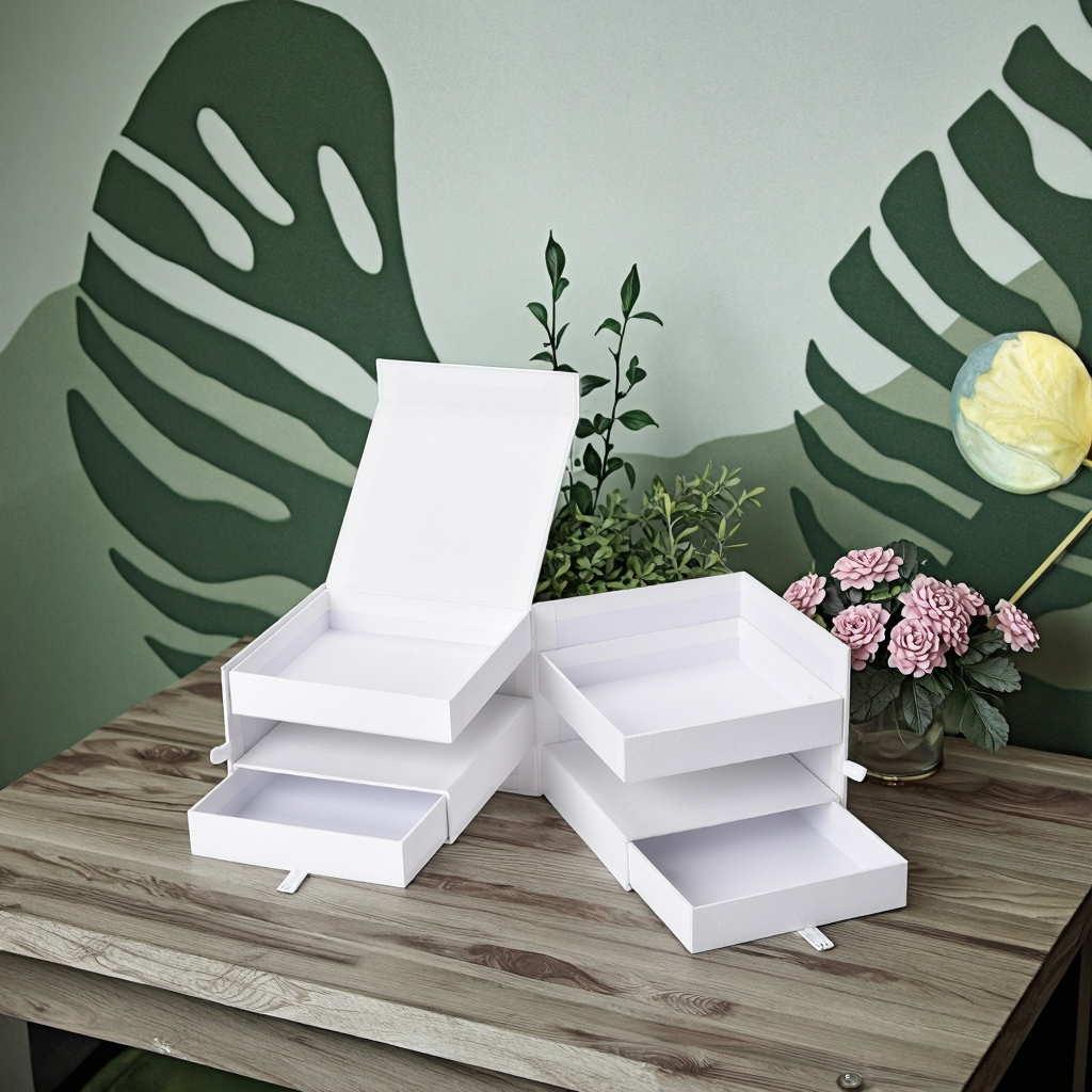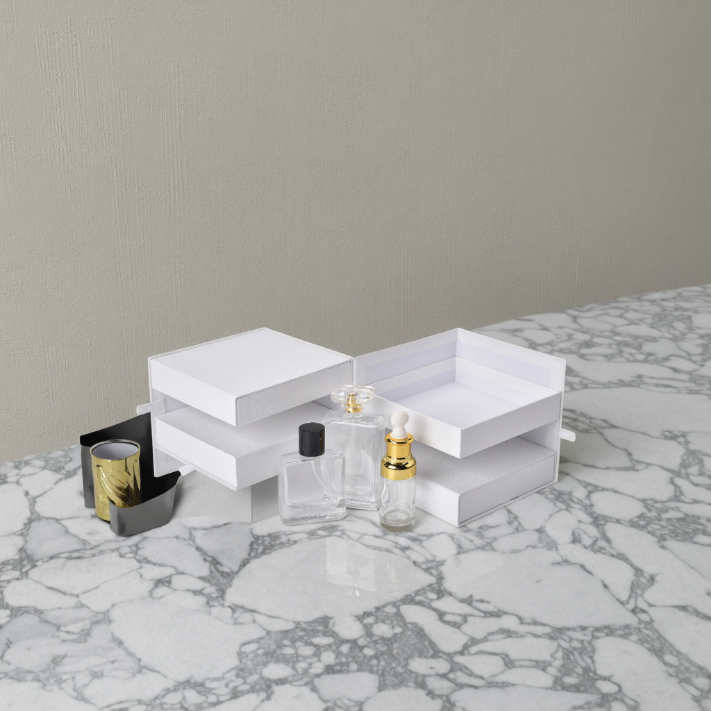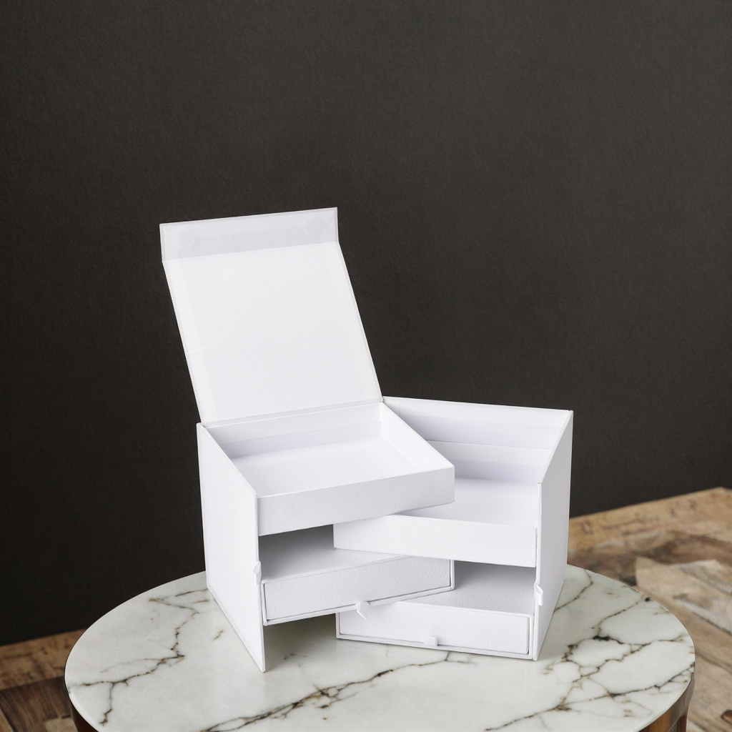 This high-end gift box features a white multi-layer drawer design and magnetic closure, ensuring smooth opening and closing. Made of paper, it has a good texture and combines the functions of gift packaging and storage. It can be classified and stored for cosmetics such as perfumes and essences as well as small items like jewelry. Supports customizing exclusive logos. The color, pattern, material, size and inner lining can all be flexibly adjusted to suit the storage of various exquisite items, fully demonstrating high-end taste and practicality.