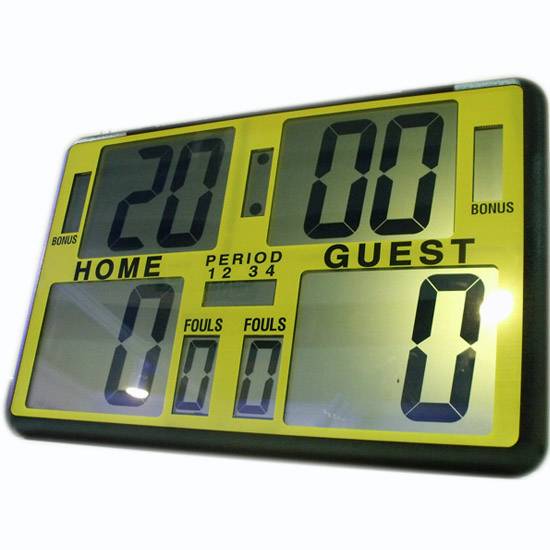 The scoreboard boasts an LCD construction, showing clear readings for accurately keeping track of the game. It prominently displays the scores of the home team and the guest team. This battery-operated scoreboard is reliable equipment for a wide variety of sport events.