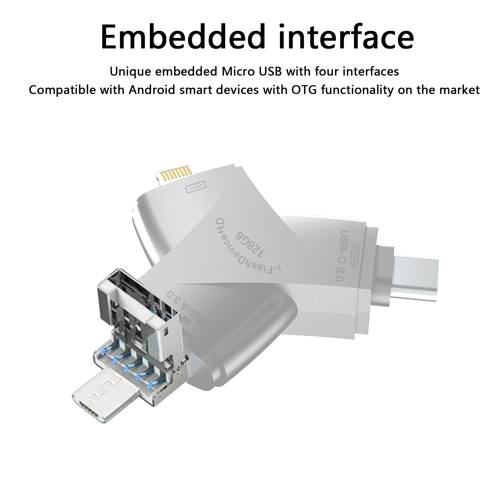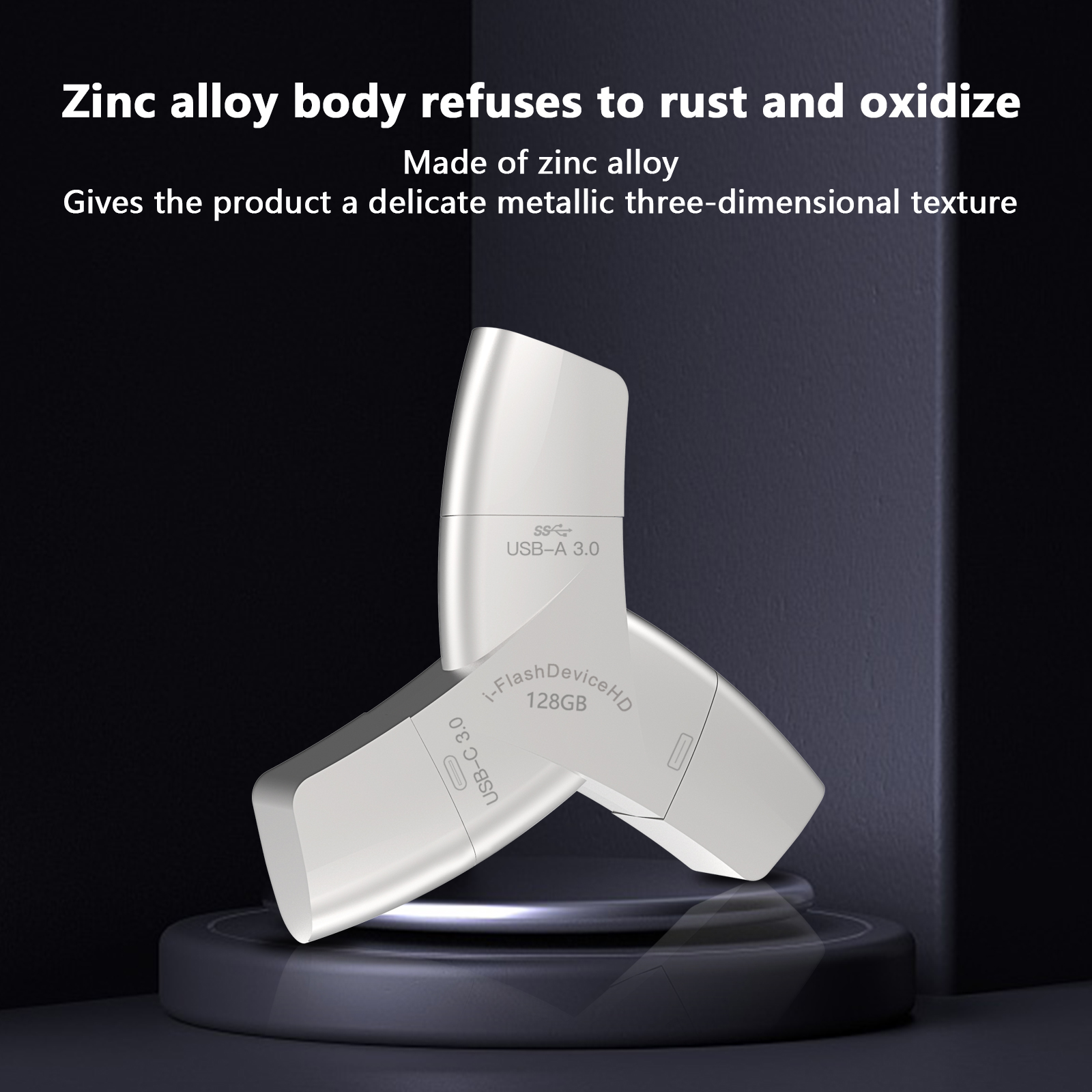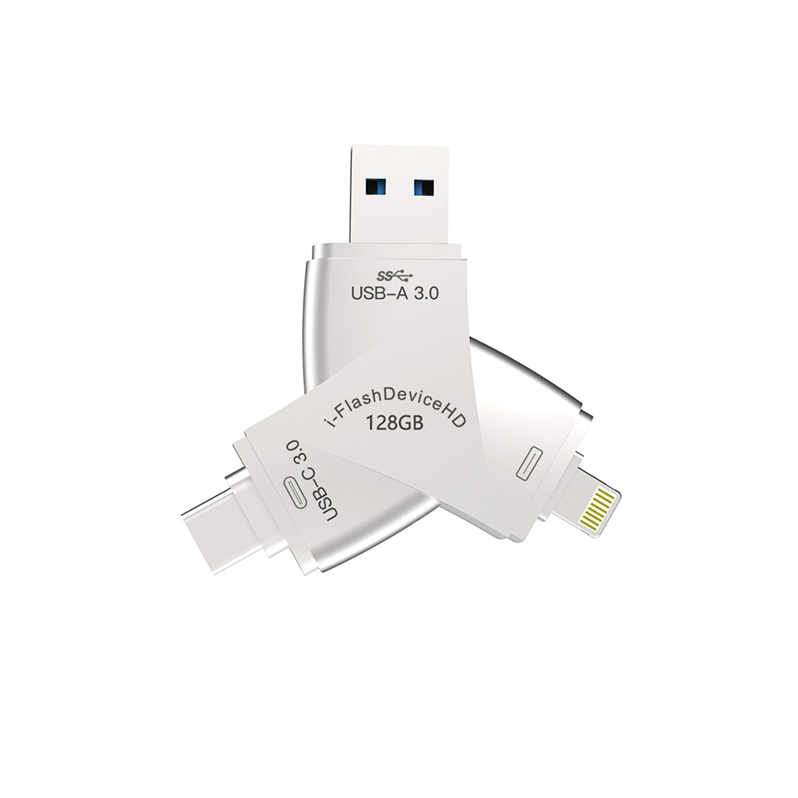 As a professional digital accessories provider, ZOIOT presents the NK-920 HD 4-in-1 USB 3.0 flash drive, designed for universal cross-device data storage and sharing. Featuring Lightning, USB-A 3.0, USB-C 3.0, and Micro USB four integrated interfaces, it supports plug-and-play across iOS, Android, Windows, Mac, and Linux systems, delivering high-speed transmission (USB-A/USB-C up to 5Gbps, Lightning/Micro USB up to 480Mbps) to transfer large files in seconds. Crafted from durable zinc alloy with a compact 70mm design, it resists rust and corrosion while ensuring easy portability. Paired with the exclusive "i-FlashDevice HD" APP, it enables one-click backup, instant photo saving, and intelligent file management to expand device storage and eliminate memory anxiety. Ideal for seamless data sharing between phones, tablets, and computers, it caters to cross-border e-commerce, wholesale, and corporate procurement needs with reliable performance.