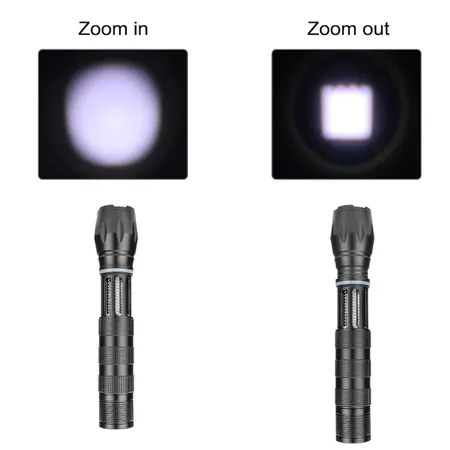 5 XPG 18650/3AAA (not included) Size:35x35x180mm With mosquito killer 6 flash modes Zooming adjusting