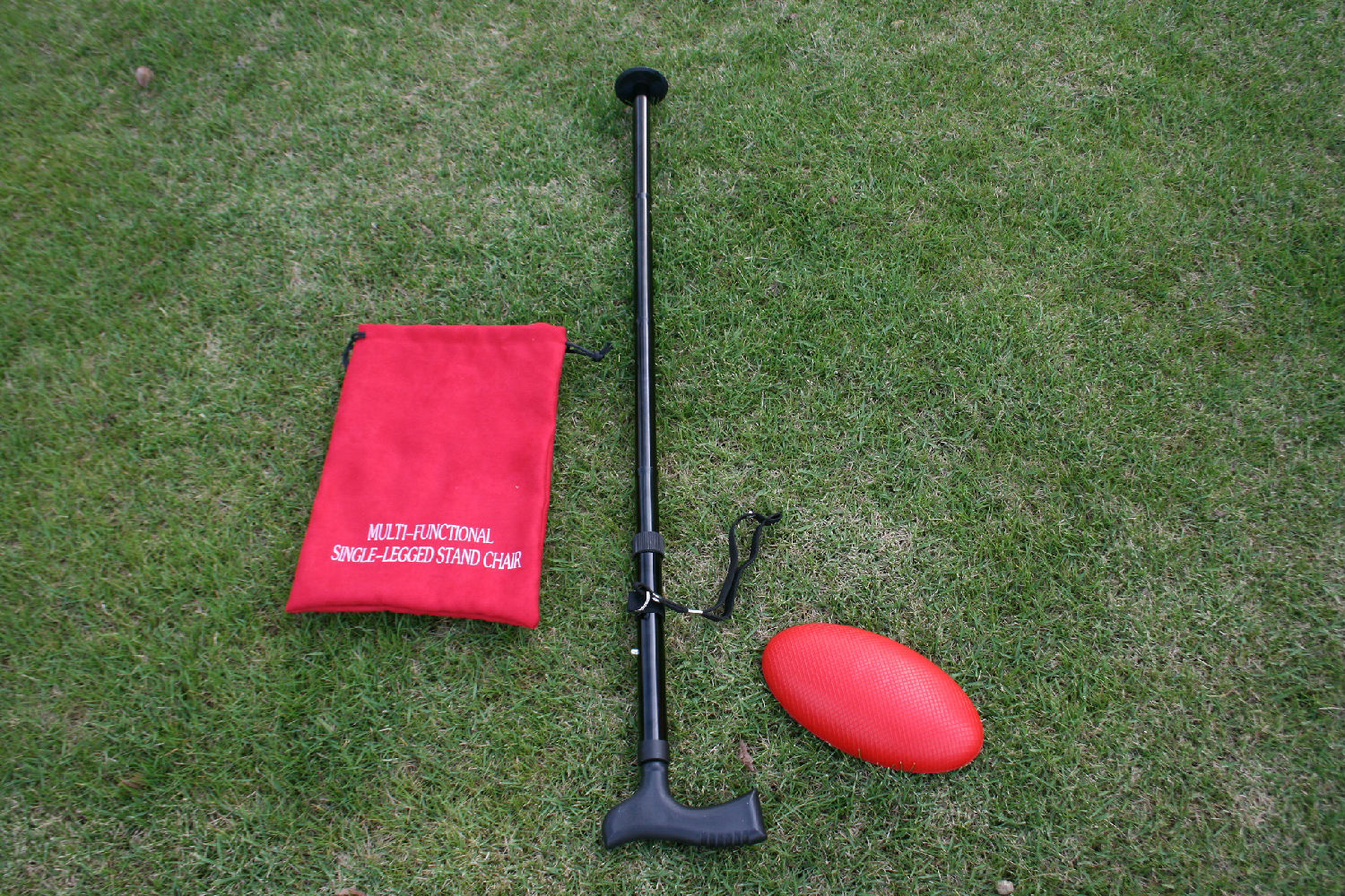 This multi-functional single-legged stand chair can be used as a walking stick and a chair. It has a foldable aluminum tube and has a crutch handle and an oval ABS seat for optional use. The stand chair can support a load of 120kg and is excellent for travelling use.