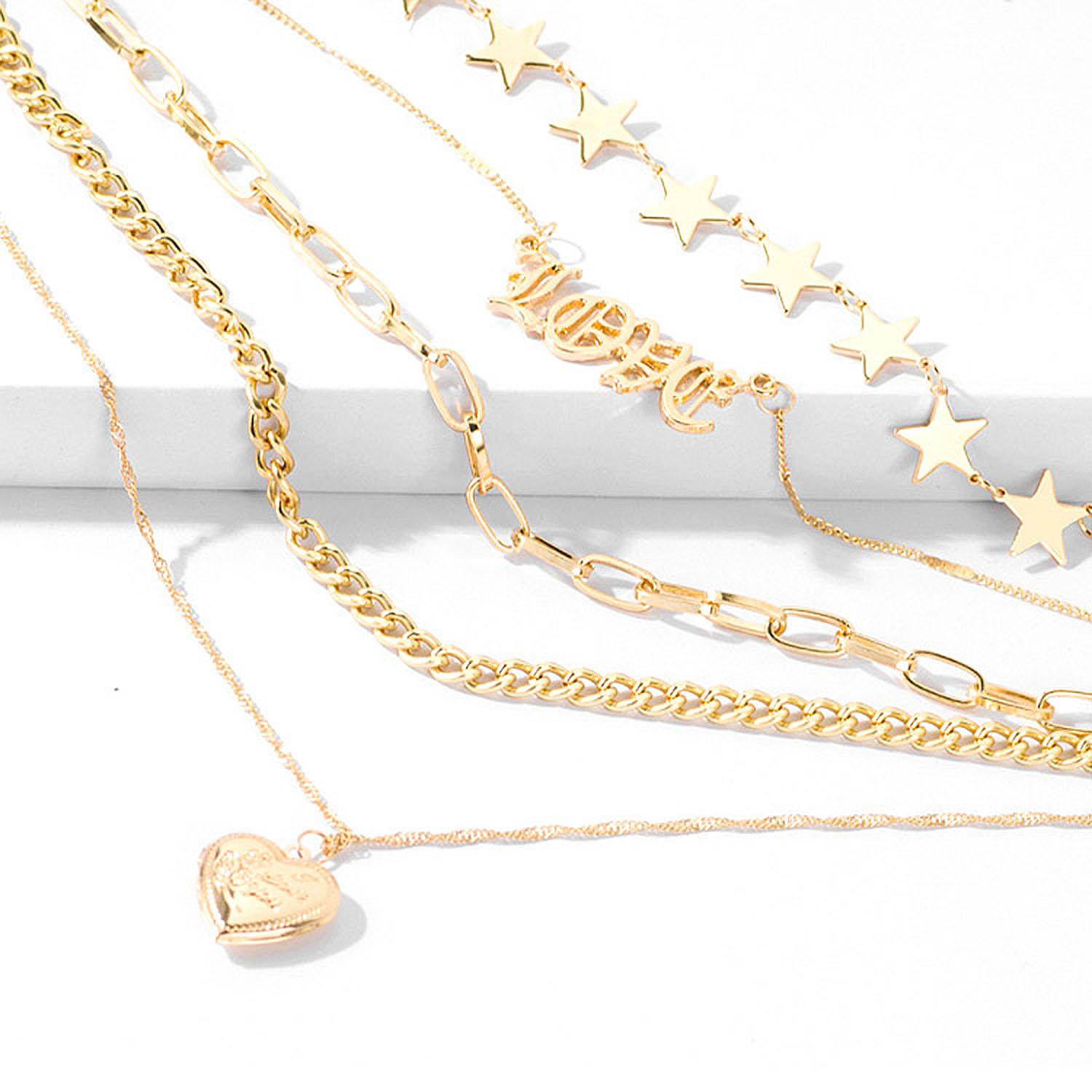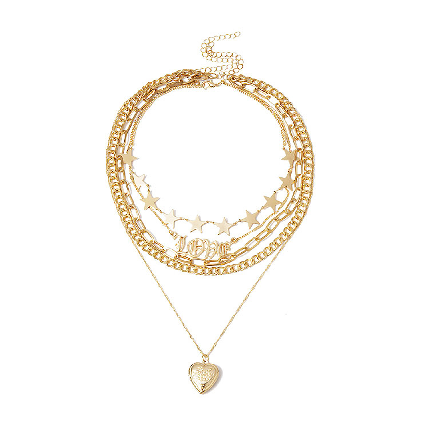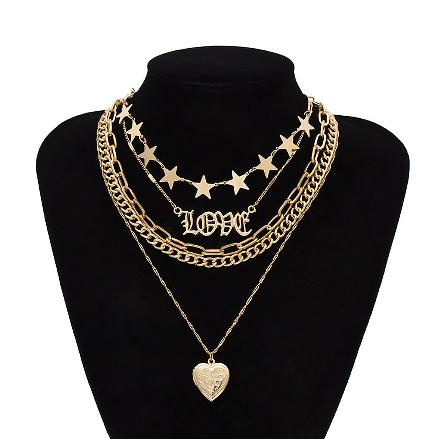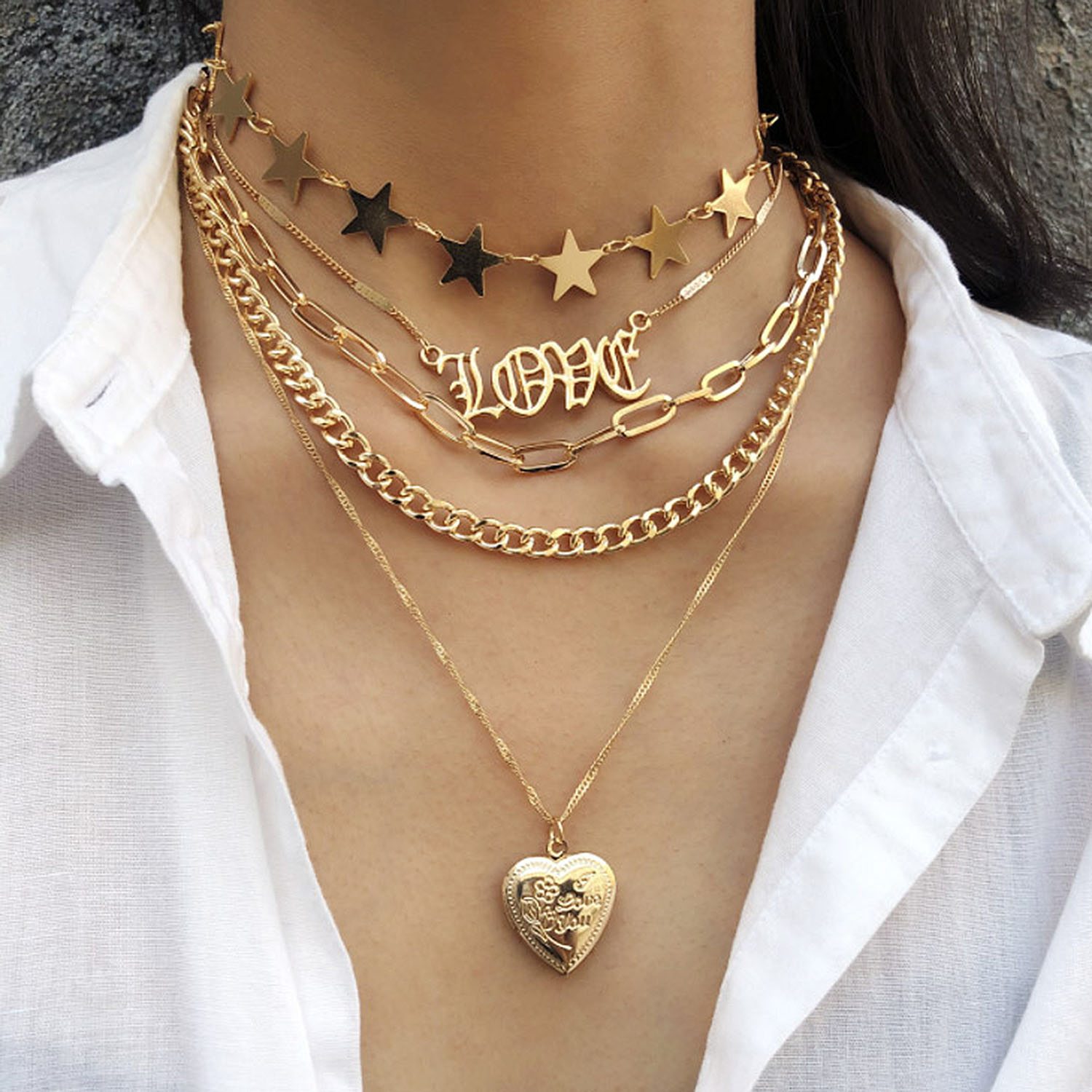 Multi-layer Punk Chunky Open Locket Heart Pendant is produced by Alloy with gold plated. It is embossed with Open Locket Heart and suitable for all kinds of occasions like Daily Life, Party, Gift, Wedding, Anniversary, Engagement, Birthday, etc. Wear 5 gold chains without doing all the work! This multi-layered necklace does it all for you. A statement piece while still being dainty, this necklace is comprised of 5 individual dainty gold chains connected together by a lobster clasp closure and chain extender. You can also adjust the necklace to be shortened so it can look like a choker.
