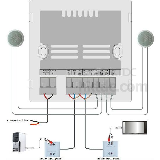 Audio sources: AUX 1/AUX 2, you can connect your TV, PC, DVD, etc., 3.5mm audio interface, built-in TF card, U disk.