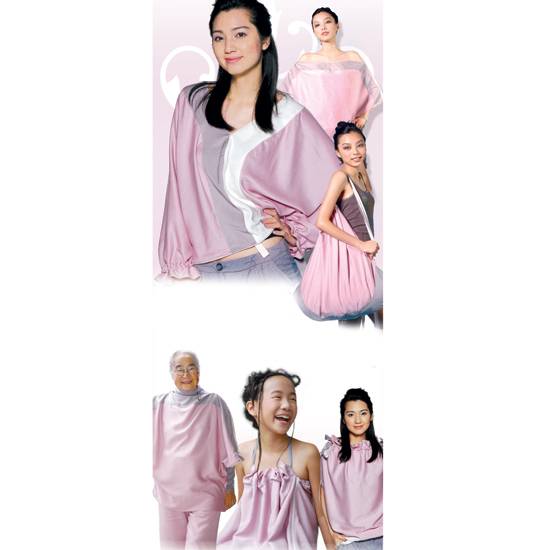 This multi-usage garment can be wore or as used as a bag. Different ways, strapless or big sleeves, for the wearer to fit the garment with her. It can also be a bag with cords as a fashion accessory for casual wear.