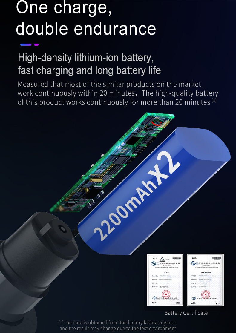 4. Light indicator :quick flash when battery is low ,slow flash when charging , lights on after full charged