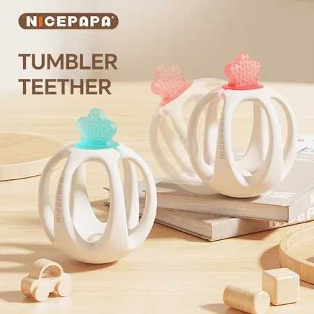 Silicone teether comes into less contact with the desktop or floor as the inverted low center of gravity design, which promotes hygiene and safety.