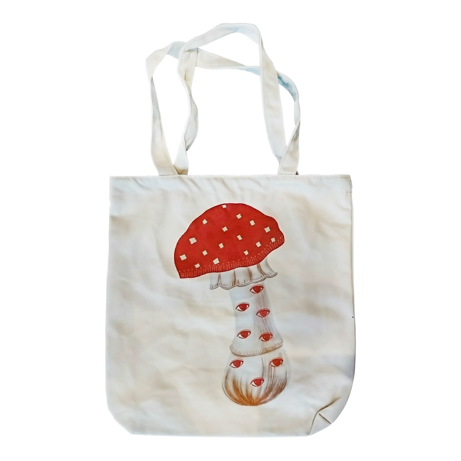 This chic canvas tote bag has a striking and clear print of an enormous mushroom. It also comes with two sturdy handles for carrying in the crook of your arms. Keep your personal belongings secure and organized with this lightweight and durable tote bag.