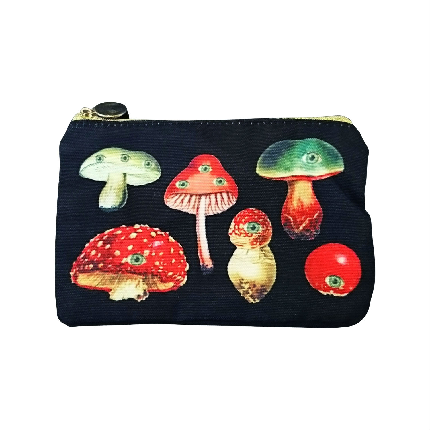 Embellished with unique mushroom prints, this rectangular cosmetic pouch is a perfect accompanied item for ladies.  Its zip closure and polyester construction offer superior protection for your personal possessions.  Make your bag contents organized by storing your beauty essentials and small accessories in this unique and fashionable cosmetic pouch.