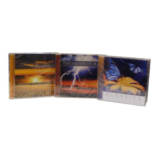 The featured items are three music discs recorded with relaxing music. They are available in various types of music, such as romantic and tranquil moments, which are all great for enjoying at home and other occassions.