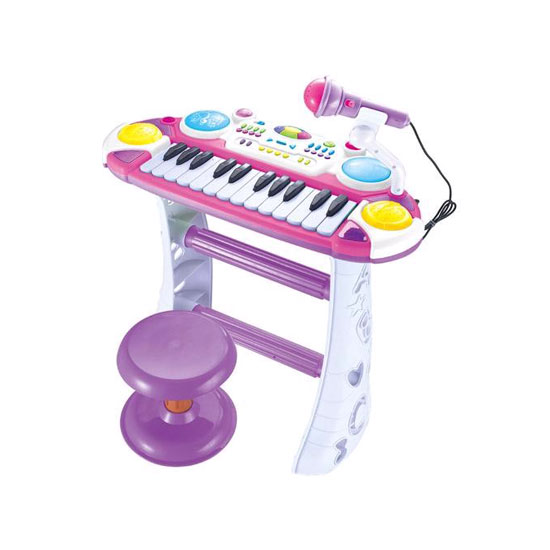 This music toy set comes with a toy piano, a microphone and a seat. This toy set features a colorful appearance for an eye-catching look. The robust structure ensures a long service life.