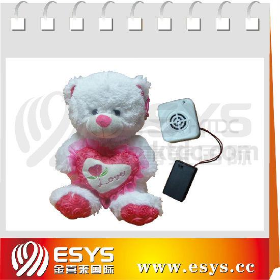 Sound box/music box/voice box for plush dolls or promotional product. Application in plush toys, dolls, teddy bears, stuffed animals, education books, wine bottles, promotion shows, gifts or other products.