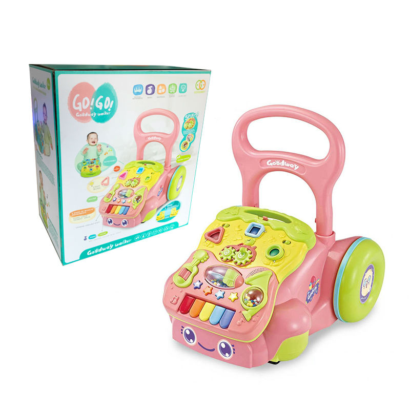Teach babies to walk when offer them musical entertainment with this musical baby walker. It has a musical panel with colorful buttons for playing different sounds and has a handle for babies to hold. This baby walker can stimulate the hearing of babies and can help develop walking skills and hand-eye coordination.