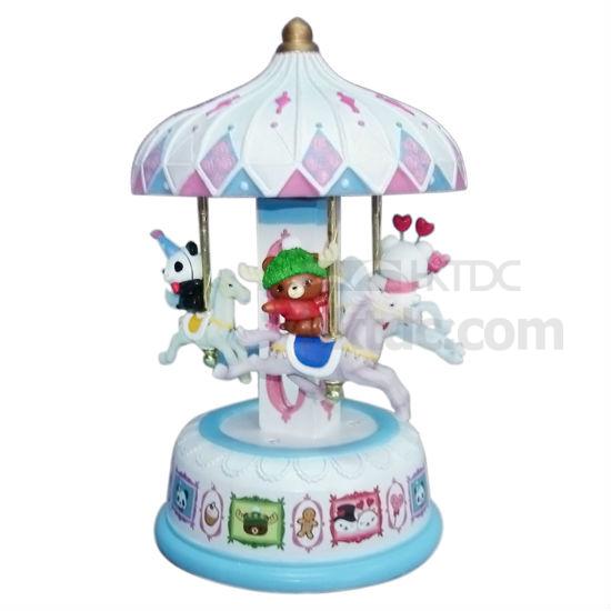 Amuse yourself and your family with this mini merry-go-round. The toy is beautifully crafted with 3 lovely riders playing the carousel. Integrated with lively music, the carousel toy makes a fun addition on your desk or shelves.