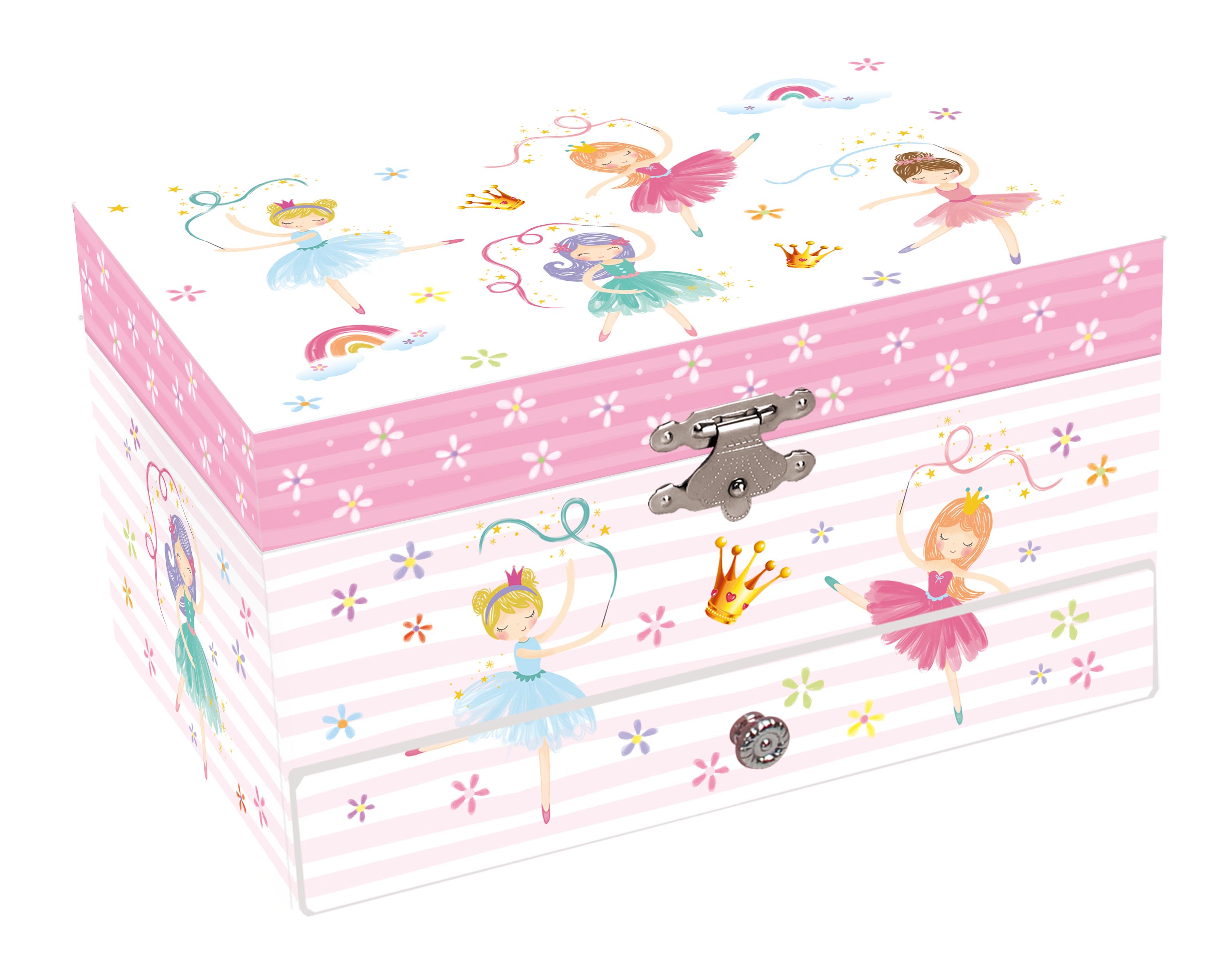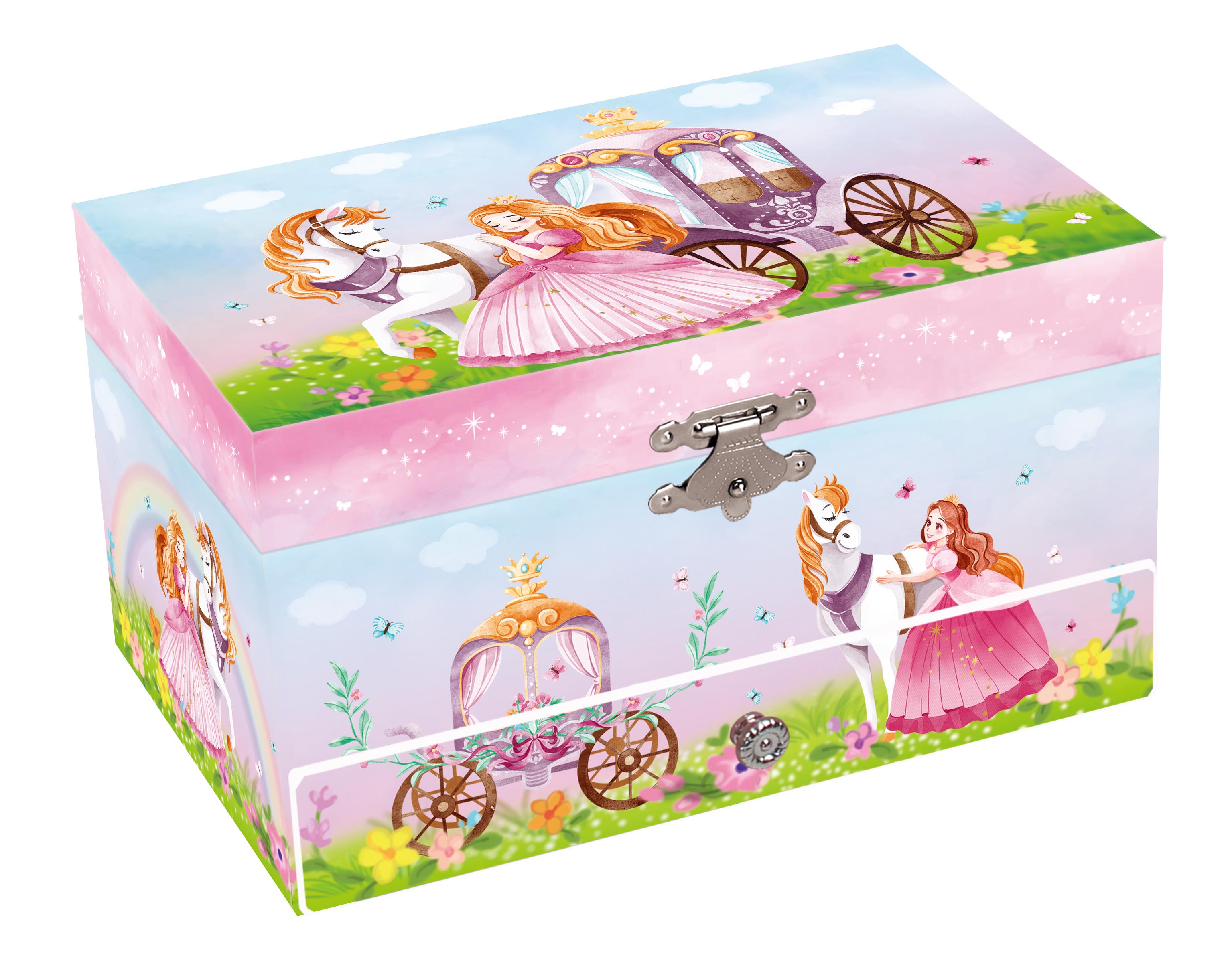 Princess design Musical jewelry box, spinning elegant figurine with music, fancy mirror on flocky lining paper.