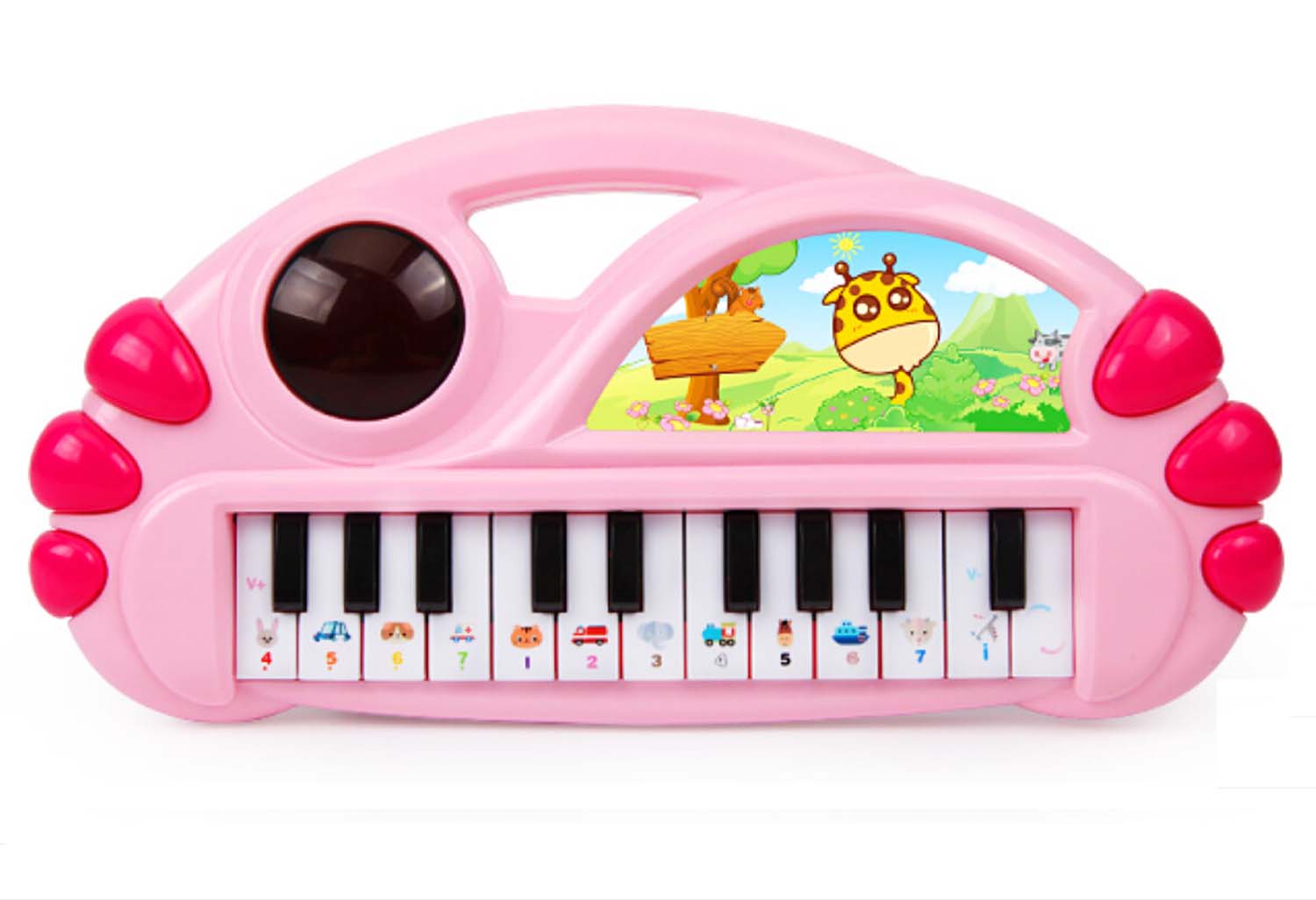This kids electronic keyboard boasts vivid pink casing, which easily catches kids eyeballs. The keyboard comes with a microphone for added fun. Discover your kid s musical talent with this toy keyboard.